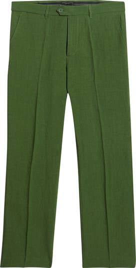 Classic and comfortable, these all-occasion chinos tailored from lightweight linen feature a soft finish and flat-front construction that smartly complements any casual or elevated outfit. They sit just above the hips and stay straight down the legs to give you an easy-wearing fit that looks smart and feels relaxed.