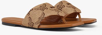 - Woven from Italian raffia textile, these jacquard sandals feature a Bavarian diamond-inspired upper wreathed in the signature Lauretos monogram