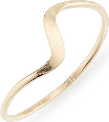 An undulate silhouette mimics an ocean wave on this gleaming ring cast in 14-karat gold fill.