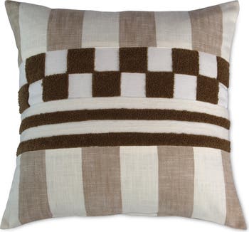 Contrasting checks and stripes with alternating textures bring rich dimension to this throw pillow designed to charm any room in your home.
