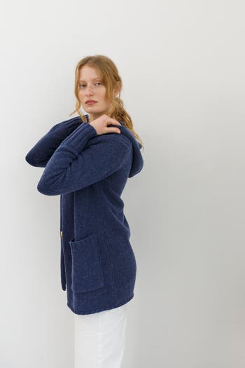 Opt for character in our hooded coatigan, knitted in merino wool for superior warmth and comfort. Designed with a cosy hooded neckline and an edge-to-edge opening and finished with practical patch pockets.