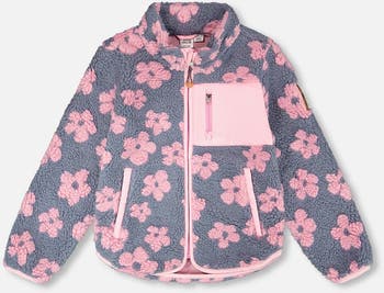 Playful yet practical, this fleece jacket with pink flowers combines warmth, comfort, and modern flair. Made from ultra-soft fleece fabric, this jacket features a zip-front closure, a contrast chest pocket with zipper, and two side pockets for convenience. The mock neck adds extra protection from the wind, while the logo patch on the arm completes the sporty look.