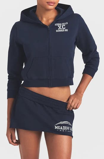 Experience comfort that makes a statement. Designed in the brand's ultrasoft and heavyweight fleece, this miniskirt features a low-rise silhouette, elastic waistband and a sporty graphic. It's complete with side pockets, ribbed side panels and a raw-cut hem.