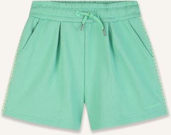 Let yourself be seduced by the exceptional comfort of the LANVIN non-brushed fleece shorts. It contains organically grown cotton, it offers unparalleled softness for small adventures. Its neat design is accentuated by an elegant Curb braid on the sides and a tone-on-tone embroidered logo on the front. With its elasticated waistband and laces, these shorts combine style and practicality, perfect for moments of play. This model is Green Around (see details below: Traceability and Manufacturing).