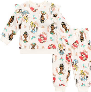 Cozy up in Disney style with this Minnie Mouse fleece sweatshirt and pants set, perfect for cool-weather days. The long-sleeve graphic top features glittery details and playful drop-shoulder sleeves, while the jogger-style pants offer a comfy elastic waist, ankle cuffs, and a secure drawstring fit. Soft and warm, this set is ideal for school, play, or holiday festivities, keeping kids snug while showing off Minnie's timeless charm.