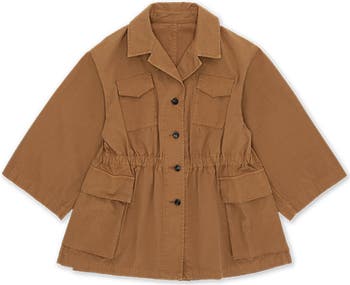 The WFLEGIA safari jacket is a military-inspired Fortela garment. The garment is made of Parachute Poplin. Parachute Poplin is a compact canvas used by military paratroopers for landings during their missions. Its main feature is a crisp hand that enhances the wearability. The entirely Italian production ensures a manufacturing excellence that is reflected in every detail of the garment, underlining how it was created to last over time and evolve together with the wearer. The WFLEGIA, with rigorous details such as the flap pockets on the front, is toned down by the extremely feminine fit, given by the drawstring that emphasizes the waist and the 3/4 sleeve. This attention to detail makes the WFLEGIA a must-have item for the summer. On the back, the iconic Fortela stitching, made with orange thread, embodies the brand's philosophy: each piece is created to last and age together with the wearer, carrying with it a piece of history revisited in the light of Alessandro Squarzi's inspiration and study.