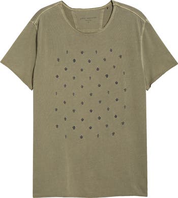 Raw edges and a washed-down finish further the relaxed vibes of this embroidered T-shirt cut from soft, breathable organic cotton that feels cool and comfortable all day.