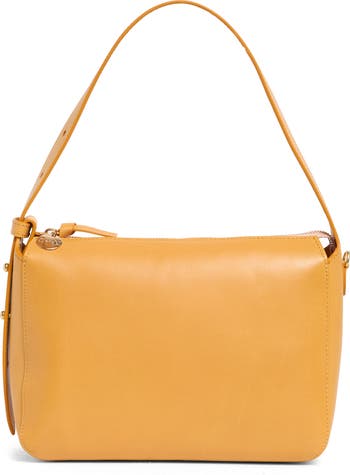 A slightly slouchy topline and brushed hardware highlight the Italian leather exterior of a '90s-inspired shoulder bag designed with chambray lining and an adjustable strap.