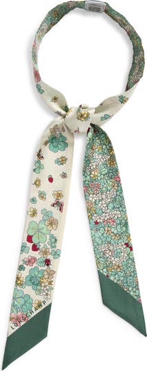 Scattered floral motifs in muted tones bring a vintage-inspired look to this silk bandana scarf cut in a slim silhouette that ties neatly around the neck.
