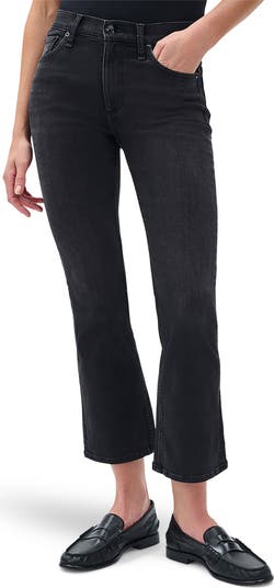 Cut from superstretchy denim, these cleanly styled bootcut jeans fit slim through the thighs and flare out slightly into ankle-grazing hems.