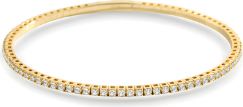 Experience the perfect blend of elegance and comfort with this flexible diamond tennis bracelet. Its innovative design moves gracefully with you, featuring a continuous line of sparkling diamonds set in yellow gold. Ideal for adding a touch of sophistication to any ensemble. Bracelet Length: 7". Bracelet Width: 2.1mm.