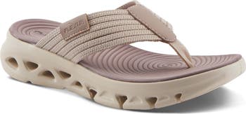 A durable fabric upper and sturdy toe post enhance the comfort of a sporty flip-flop that ensures a secure fit and cradles your foot. An anatomical footbed and flexible outsole provide traction and shock absorption.