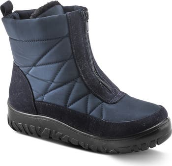 Take on the chilly weather in these hike-ready bootie with a zippered front, fold-out metal ice grip at the base of the heel and warm faux fur lining.