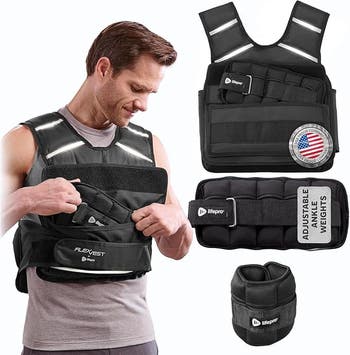 "Elevate your workouts with the Lifepro 2-in-1 Adjustable Weighted Vest + Ankle Weights, designed for strength training, running, and functional fitness. This versatile weighted vest for walking and running includes removable ankle weights for targeted leg workouts or full-body training. Adjust from 5–20 lbs to match your fitness level—ideal for beginners, athletes, or rehab routines. Crafted for comfort, the weighted running vest features breathable, durable fabric and secure adjustable straps that prevent slipping during burpees, squats, or runs. Stay visible during early morning or evening sessions with 360° reflective strips. Convenient front and back pockets store your phone, keys, or fitness essentials—eliminating the need for extra armbands. This weighted workout vest is a premium, versatile tool for cardio, endurance, rucking, and resistance training. Built to last and backed by a lifetime warranty, the Lifepro FlexVest ensures you can confidently enhance strength, stamina, and overall fitness without additional equipment."