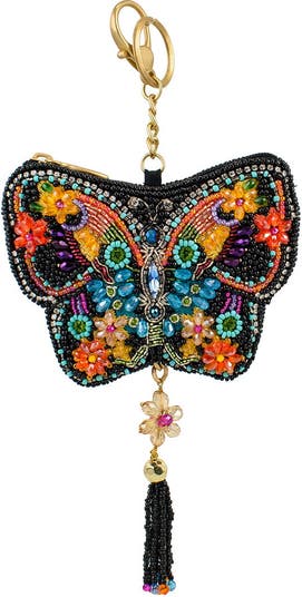Add a pop of color to your day with this vibrant Mary Frances butterfly coin purse, featuring bold beadwork, floral details, and a playful tassel. Perfect for stashing small essentials