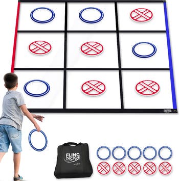 - GIANT SIZE - Bring on the epic backyard battles with this tic tac toe game! It's 5x bigger than the competitors (9ft x 9ft) and 100x the fun. Toss those flying rings and battle it out to be the king of the rings!