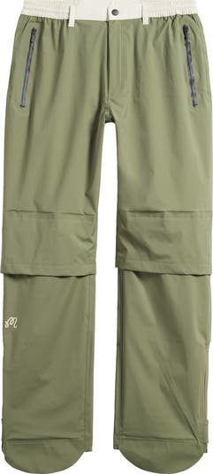 Brave the challenges of the day in these rugged, waterproof pants made with wide legs and featuring snap buttons at the knee to adjust length.