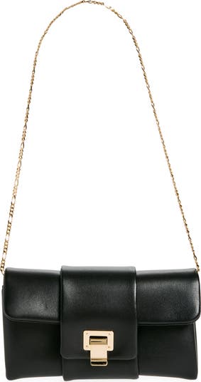 A jewelry-inspired figaro-chain strap offers hands-free carry for this lambskin-leather clutch that fits right into the NYC-based label's collection of elevated classics.