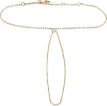 A floating diamond illuminates an adjustable hand chain crafted from 14-karat gold with a high-shine finish.