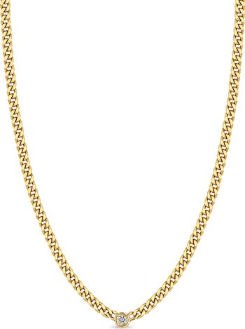 A single brilliant diamond appears to float on this gleaming curb-chain necklace of 14-karat gold.