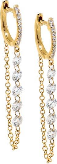 Floating Multi Diamond Chain Pave Huggie Earring 14K