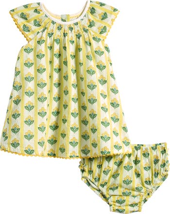 Baby will have perfectly polished look with this shirred floral-print dress and matching ruffly bloomers set.