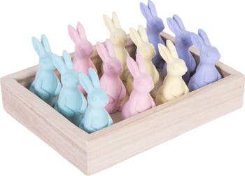 Decorate the season with this wonderful Flocked Color Bunnies In Box Easter Figurines Assortment of 12. We have designed these figurines to be displayed on a table, mantle, shelf or on any other surface inside your home. They are perfect for your home or as a gift for a friend or loved one. Get excited for decorating with them with each upcoming season.