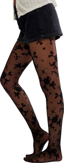 Cascading flocked blooms enliven these Italian-made sheer tights that add a romantic touch to day and evening looks.