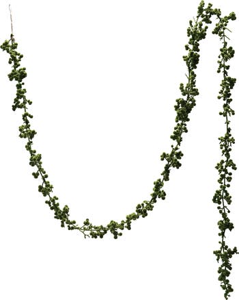 - A green flocked foam ball garland for a soft and festive seasonal accent