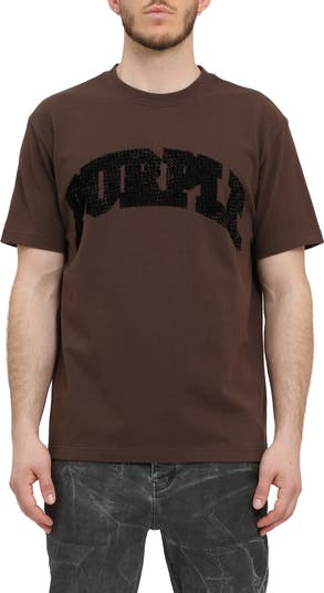 Mottled logo details arch in shadow and texture across the chest of a T-shirt made for playing or relaxing in the softness of dark-brown cotton. Wear it whether you're going out, staying in or packing up for a getaway where comfort is your top priority.