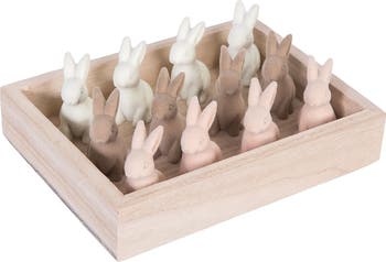 Decorate the season with this wonderful Flocked Natural Bunnies In Box Easter Figurines Assortment of 12. We have designed these figurines to be displayed on a table, mantle, shelf or on any other surface inside your home. They are perfect for your home or as a gift for a friend or loved one. Get excited for decorating with them with each upcoming season.