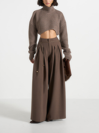 - Double front pleats introduce shape and gentle volume