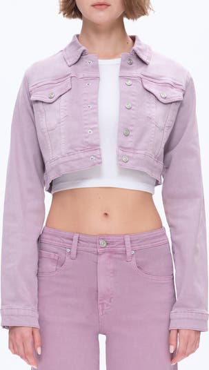 A soft purple hue adds to the warm-weather appeal of this cropped denim jacket that sets the scene for every sunny-day adventure.