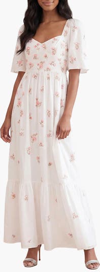 The Flora Ditsy Cotton Ankle Gown. Crafted from breathable cotton and adorned with delicate ditsy florals, this ankle gown captures the softness of late summer gardens. The flattering silhouette falls into a flowing skirt for natural movement and ease.