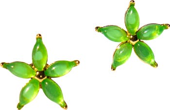 Bloom in style with the Flora earrings. Featuring radiant nephrite jade petals set in gold-plated sterling silver, these studs are a delicate floral fantasy. Perfect for adding a touch of nature’s charm to your everyday look, they’re simple, sweet, and effortlessly chic.