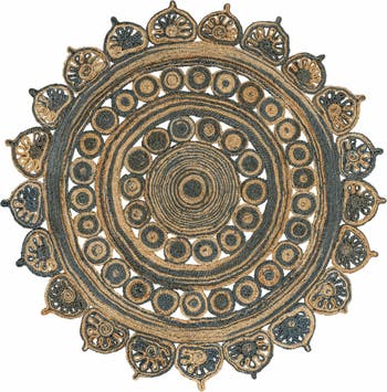 Our circular medallion rug adds a bohemian element to any home. Crafted with a unique border and low-pile jute, this rug is stylish while still being durable. This round rug is the perfect addition to any contemporary living room, entryway, or bedroom.