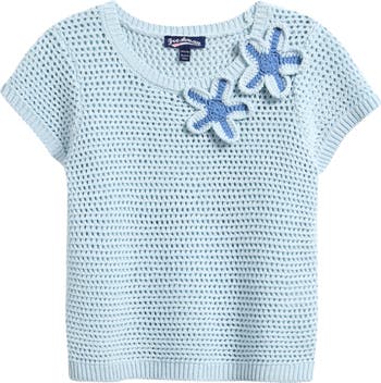 They'll love the handmade design of this cotton-blend crochet top featuring three-dimensional floral appliqués and openwork stitches.