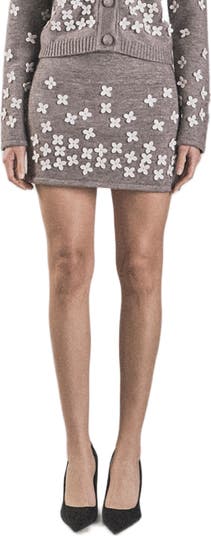 Soft texture meets statement detail in this cozy knit miniskirt designed to hug and flatter your curves. Dimensional 3D floral appliqués bloom across the silhouette, adding tactile charm and playful romance.