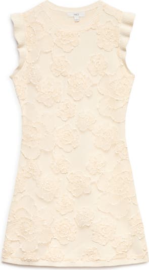 Shimmery floral appliqués make an enchanting statement on a knit minidress that's an elevated warm-weather option.