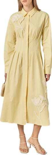 Made of crisp cotton, this long-sleeve shirtdress features shapely pintucks and tonal floral appliqués that bring an air of freshness to your look.