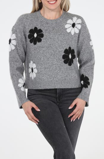 Tonal appliqué flowers add their cheery splendor to this sweater that brings year-round garden delights knit from plush, supersoft yarns.