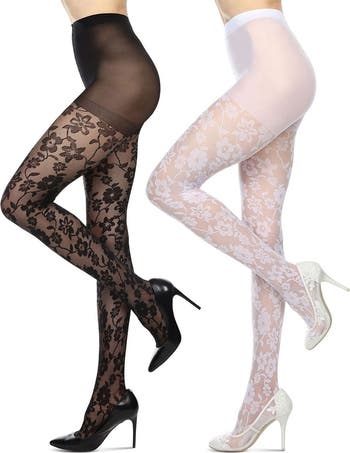 A romantic floral design winds its way down sheer tights featuring an all-day comfy waistband and a soft, flexible knit that stretches without restricting.