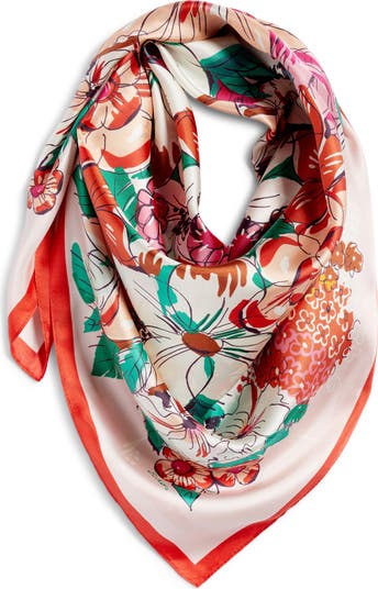 A vibrant floral pattern lends a sun-kissed look to this luxe square scarf cut from pure silk.
