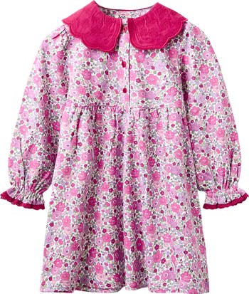 Watch baby steal the scene in this floral jersey frock covered in bright and busy blooms and finished with a broderie anglaise Peter Pan collar. Lace-trimmed long sleeves give your little one extra coverage, while front buttons make getting dressed a snap.