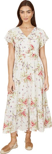 This broderie anglaise dress is perfect for a day out at the races this season, or fancier summer invites. In a midi length, with wrap over V neckline, a cinched waist and fluttery sleeves. The beautiful print is delicate and super feminine.