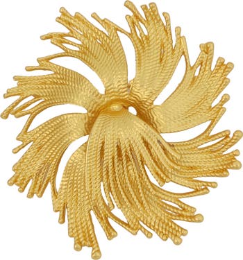 A floral brooch plated in 14-karat gold adds just the right touch of drama to any ensemble.