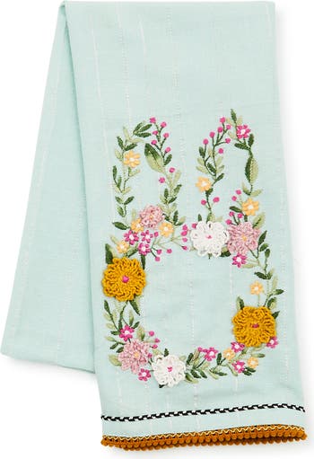 Floral Bunny Embroidered Dish Towel