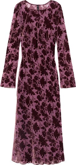 Floral Burnout Velvet Long Sleeve Maxi Dress