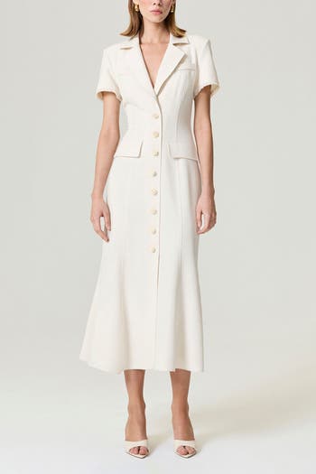 Elegant and feminine, this floral button detailed maxi dress is crafted from woven fabric with a regular fit and full lining for a smooth, flattering silhouette. Featuring a layered V-neckline with subtle shoulder padding, half sleeves finished with ruffle-trim cuffs, and a hidden back zip closure, it blends timeless tailoring with delicate details. The maxi length enhances its graceful flow, while floral button accents add a refined touch. Perfect for special occasions, evening events, or elevated daywear.