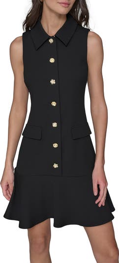 Goldtone 3D flower buttons trail down the front of this fit-and-flare shirtdress for a polished-yet-whimsical look you'll love.